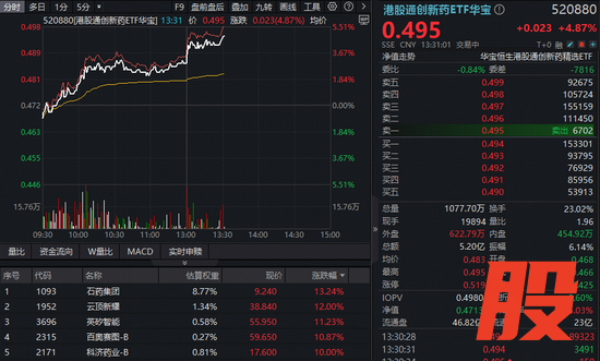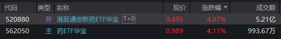 3月27日午后,A+H创新药动能十足,继续上攻,100%创新药研发标的——港股通创新药ETF华宝(520880)午后涨幅冲击5%,成交逾5亿元大超上日全天!重仓A股创新药的药ETF华宝( 562050)涨幅亦超4%。
