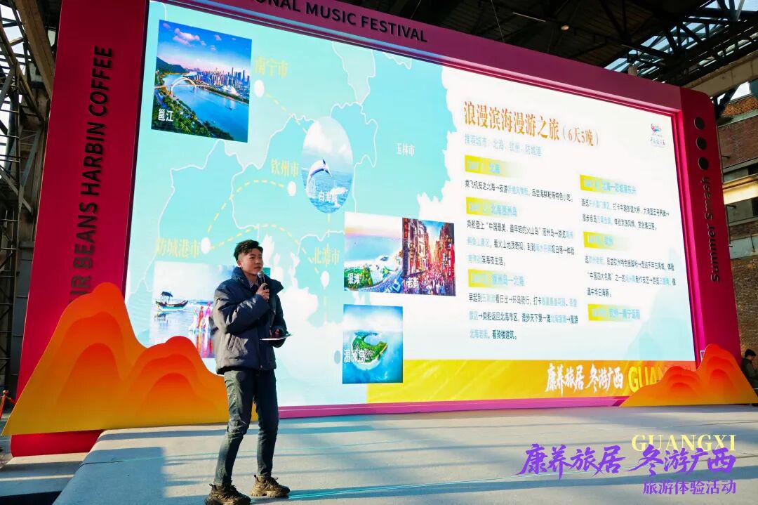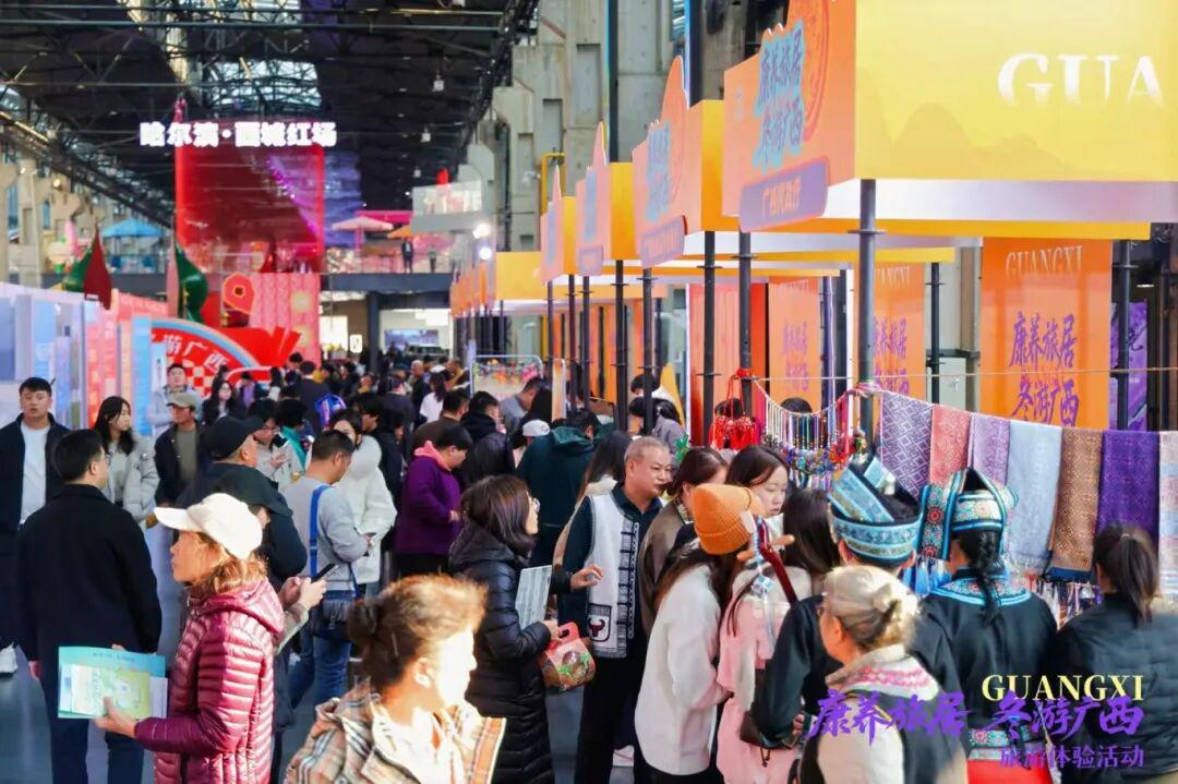 28日下午,“康养旅居 冬游广西”旅游体验活动在哈尔滨红博西城红场举行。现场不仅设有主题展区,还可以体验“甜蜜广西”流水席和“八桂欢乐”运动赛,并穿插“多彩民俗”歌舞表演、广西冬季旅游推介等多项互动体验,让市民近距离感受广西的民俗风情与康养魅力。