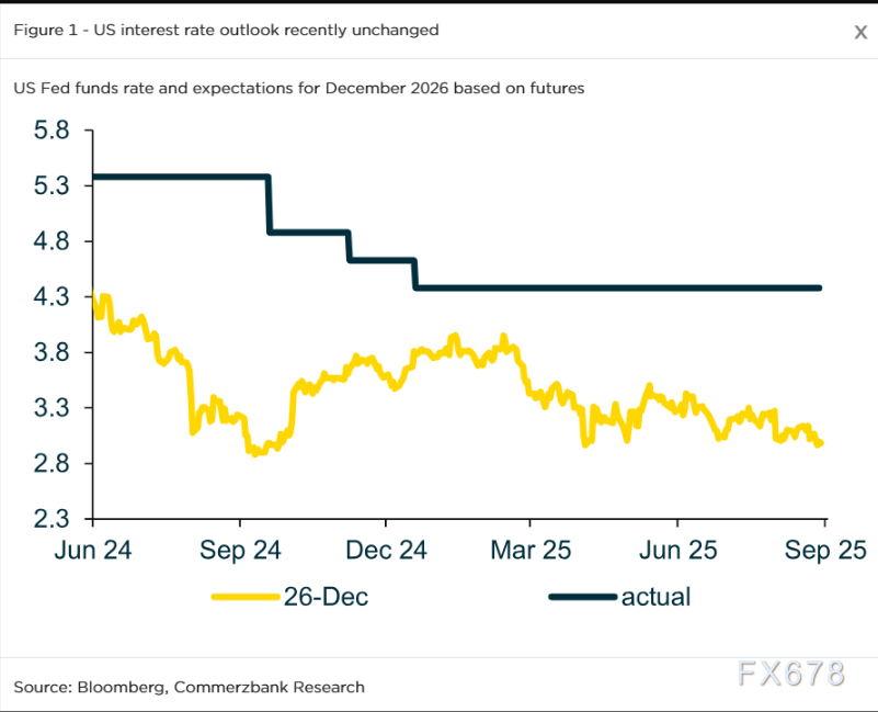 德国商业银行的美国问题专家目前预计,今年美联储将降息两次,明年降息四次,从而将政策利率降至3%的水平。